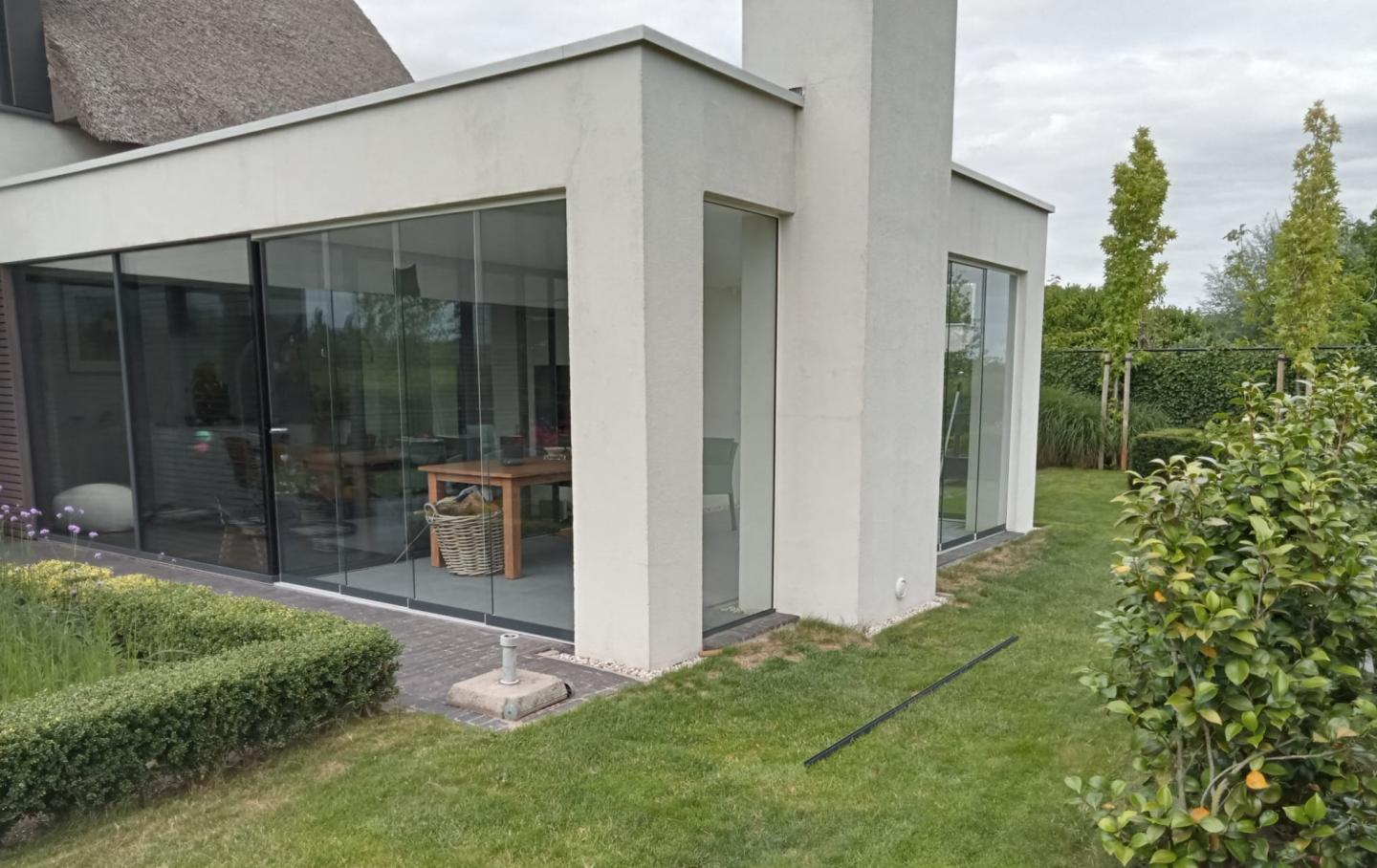 De glazen schuif- of vouwwand biedt een kozijnloze constructie waardoor u steeds geniet van een onbelemmerd uitzicht. De volglazen elementen laten zich heel gemakkelijk en zonder veel kracht verplaatsen. Ook kunnen de wanden worden voorzien van een scharnierslot. De glazen schuif-of vouwwanden kunnen worden geplaatst in een nieuwe of reeds bestaande serre of veranda.